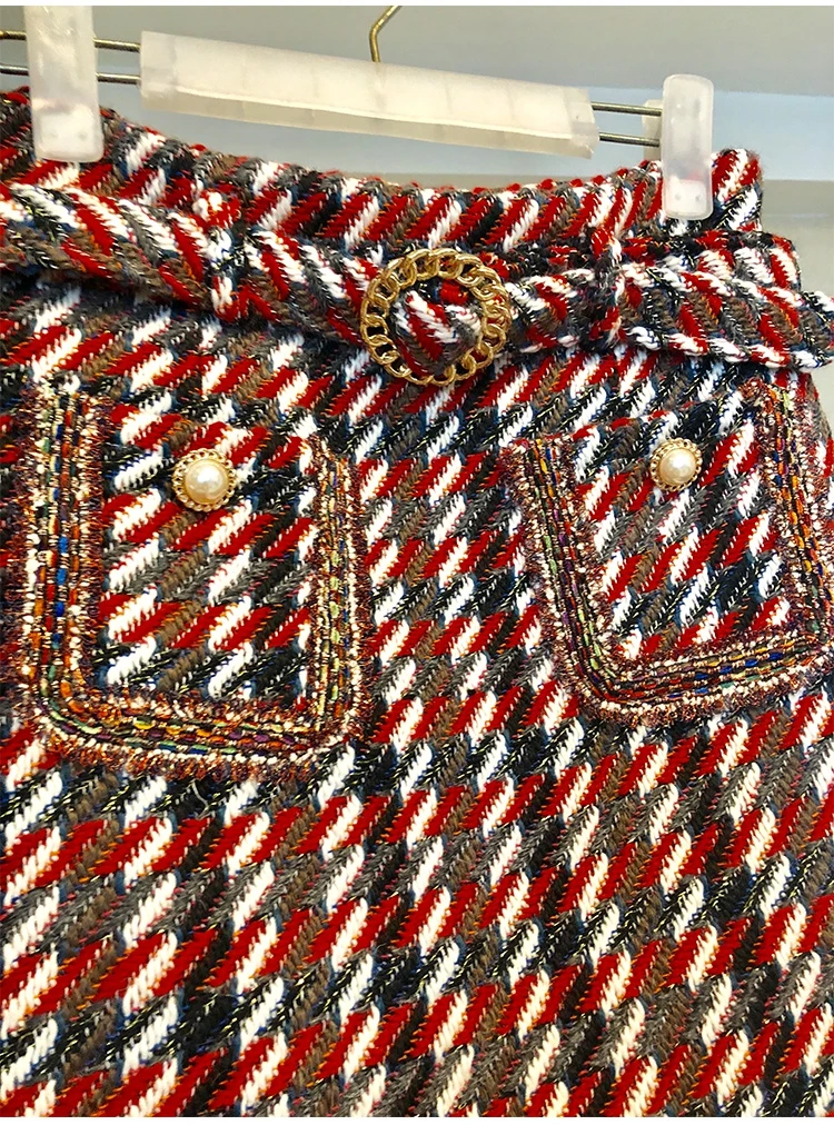 | Skirt Suits Women Runway Luxury Designers Elegant Office Ladies Formal Tweed Blazer Jacket Coat Mini Skirt 2 Piece Sets Winter |