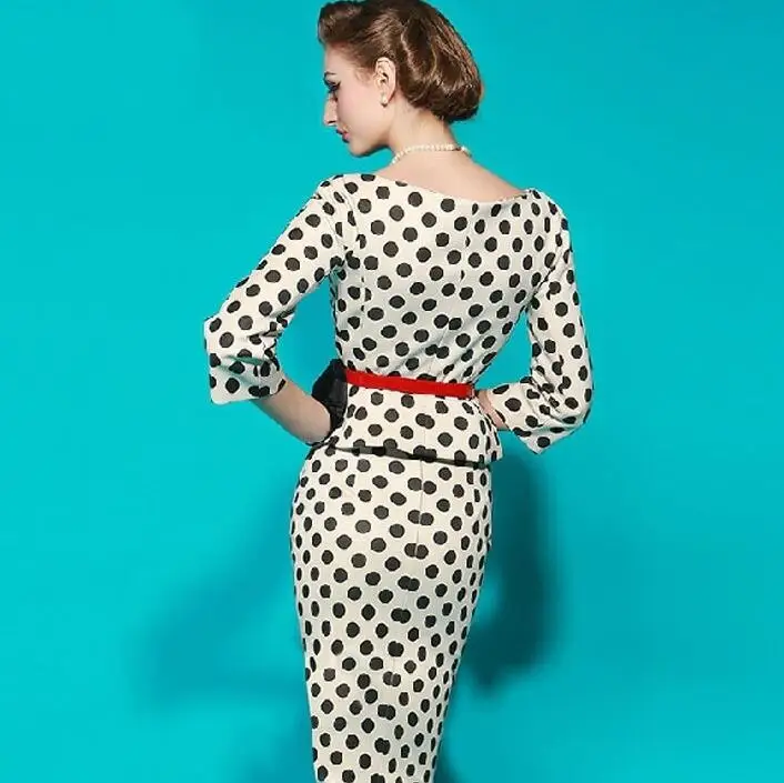 Best Price Comparison With Ladies Formal Dress Suits Office Work Wear Business Vintage Elegant Polka Dot Women Blazer Top Pencil Dress With Belt Plus Size