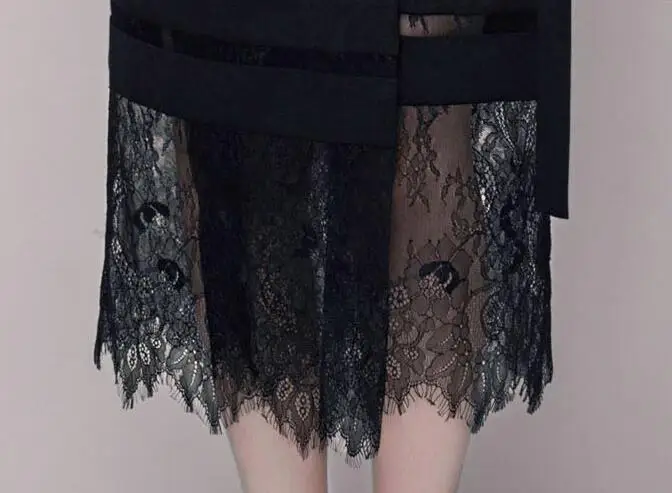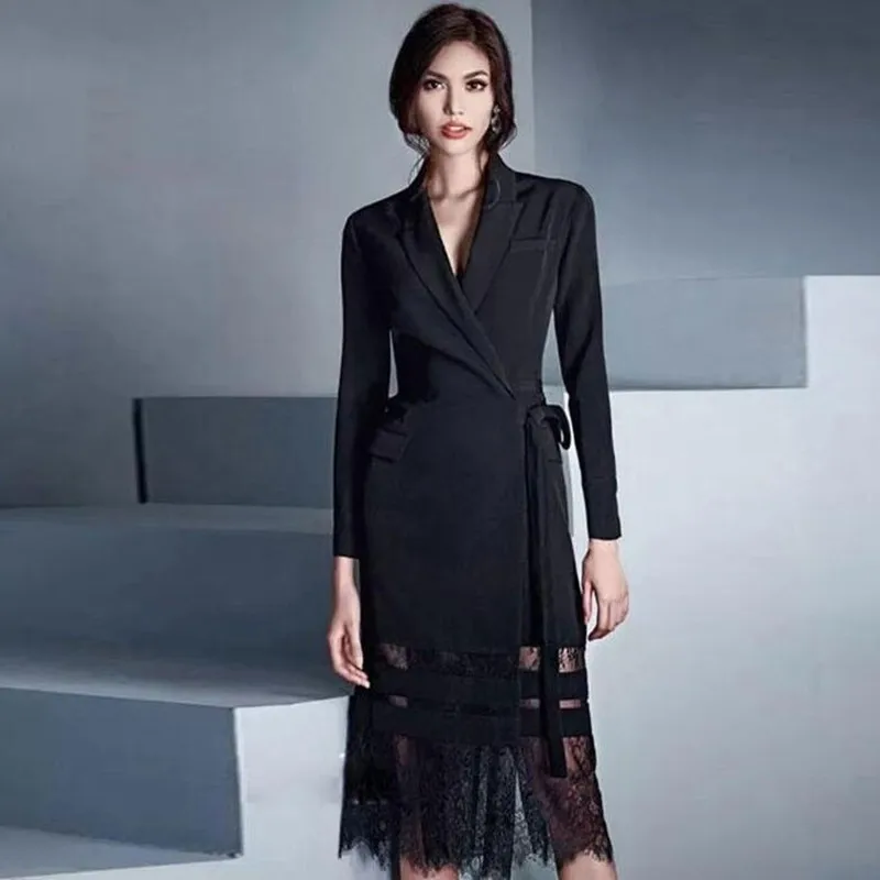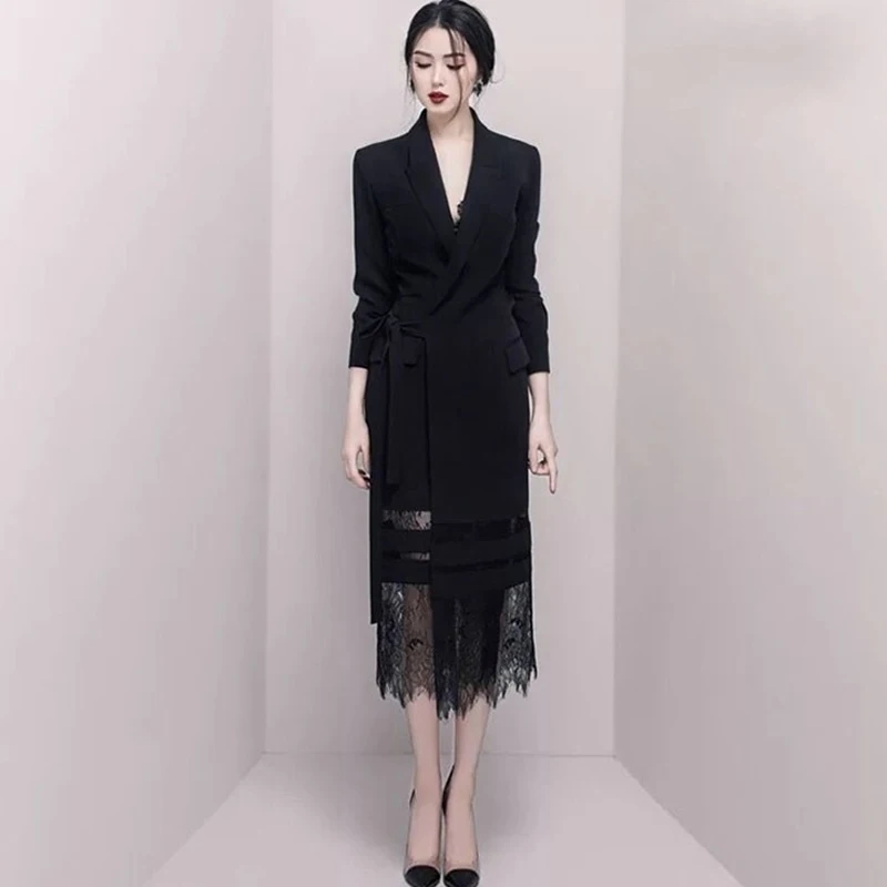 | Dress Suit Women High Quality Elegant Runway Luxury Designers Long Blazer Suit Jacket Ladies Black Lace Splice Dress Femme Robe |