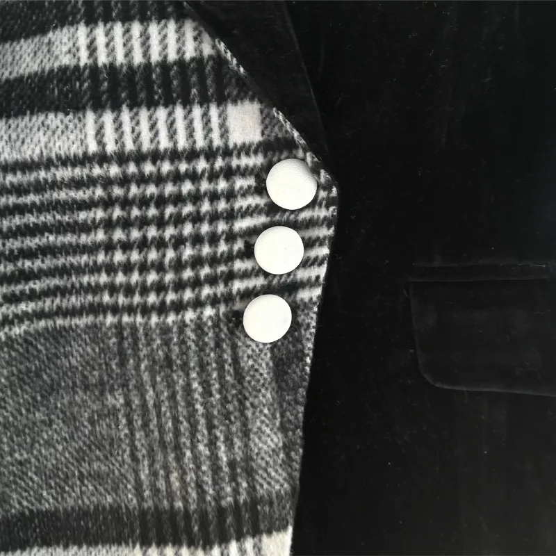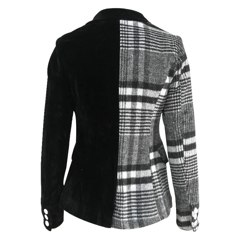 | Western Style Contrast Color Pattern WOMENS Suit Jacket Waist Hugging Slim Fit Suit Collar Long Sleeve Irregular Coat Womens |