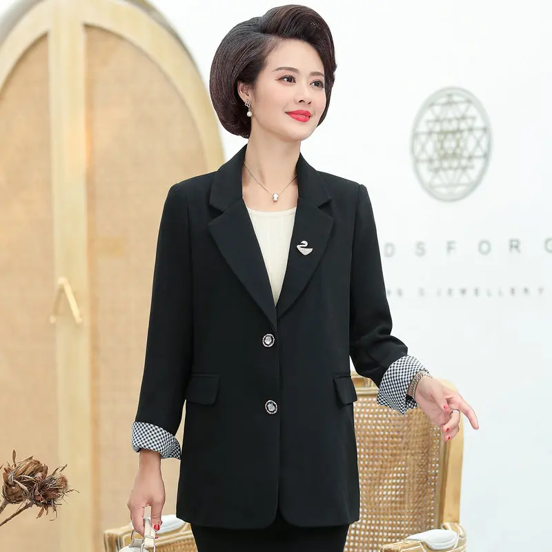 Women Elegant Blazers Black White Small Checked Pattern Suit Coat Woman Business Casual Office Outfits Notched Collar Blazer New