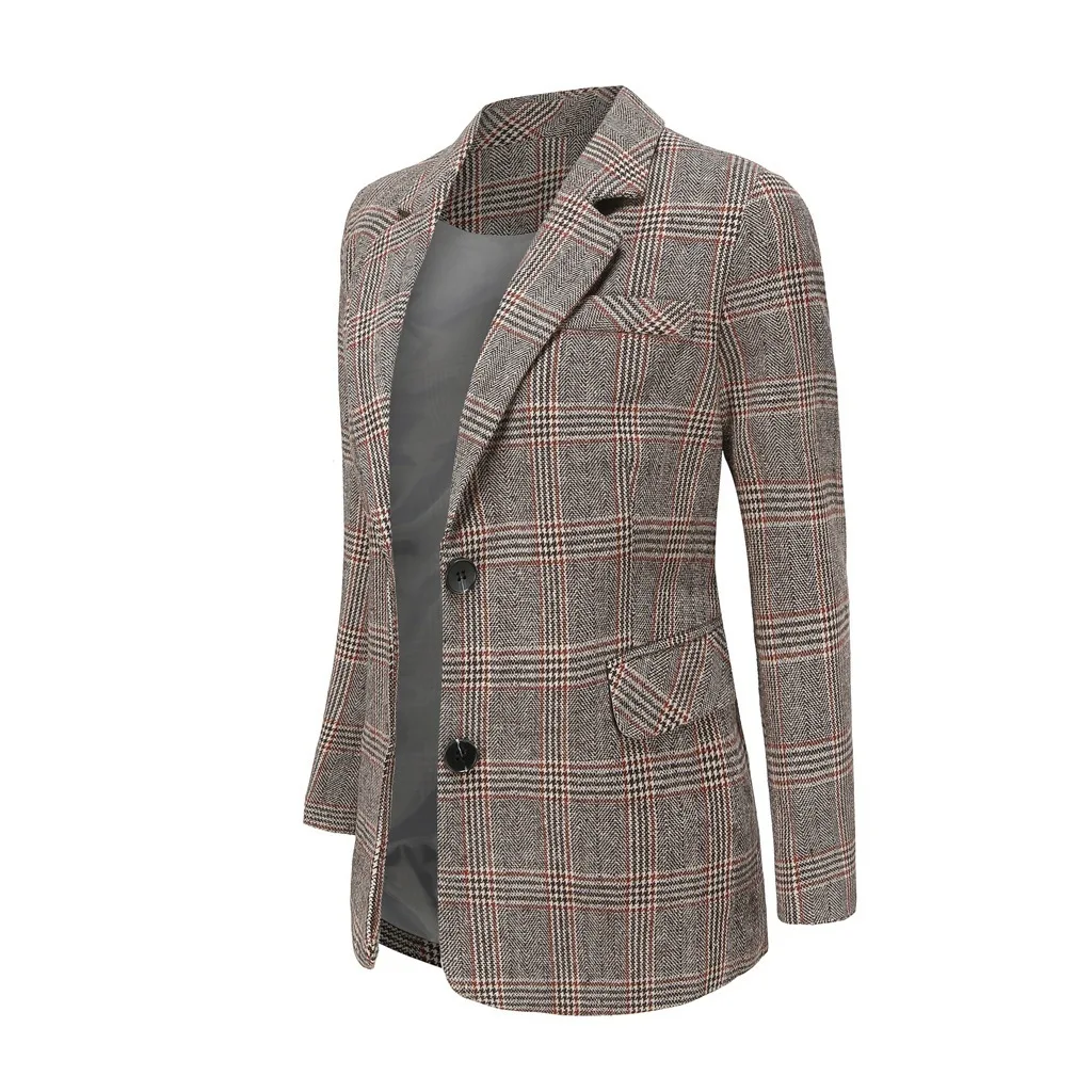Vintage Houndstooth Blazer Women Plaid Suit Jacket Ladies Elegant Long Sleeve Coat Female Tweed Wool Office Work Wear Plus Size