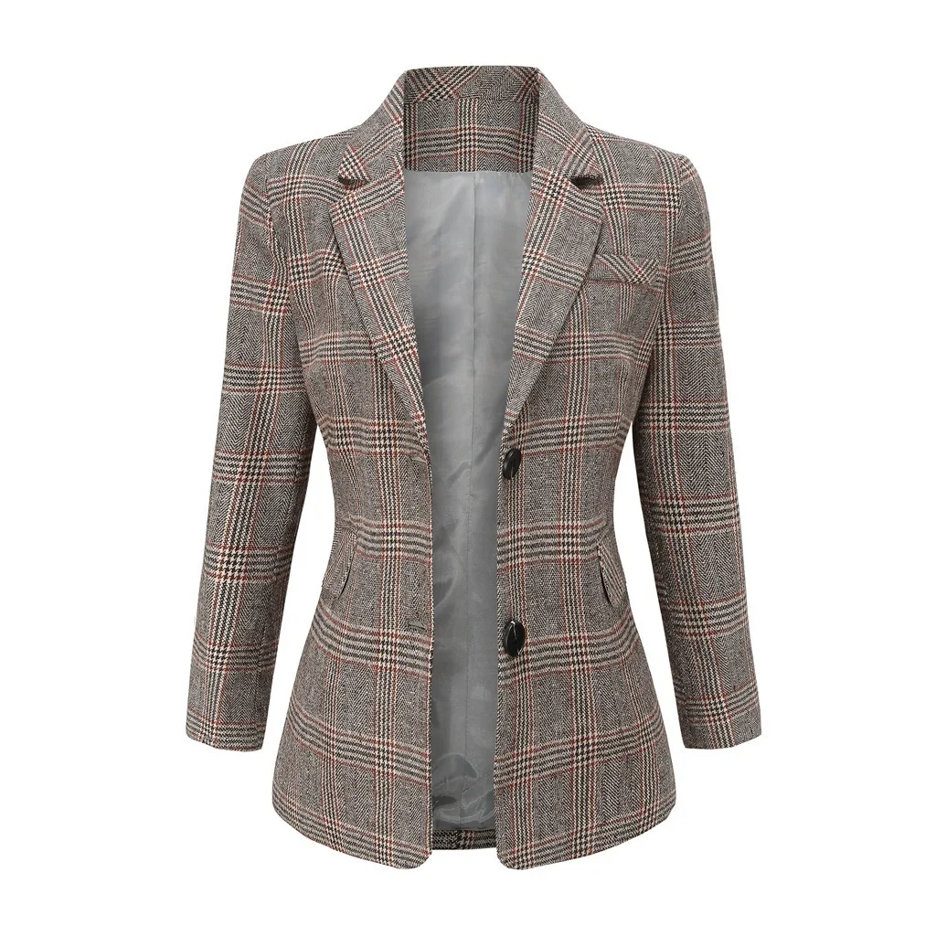 Vintage Single Breasted Office Ladies Plaid Blazer Long Sleeve Loose Houndstooth Suit Coat Jacket Pockets Women Blazers Female 2Buy Now On Aliexpress