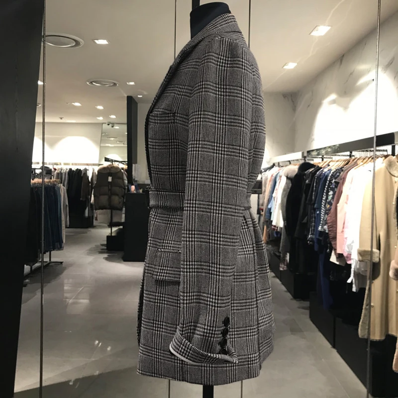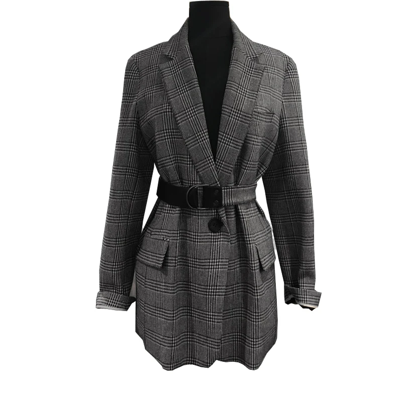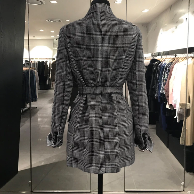 | Fashion Korean Style Designer Vintage Plaid Blazer Women Slim Office Ladies Elegant High Street Suit Jacket Coat With Belt Tops |