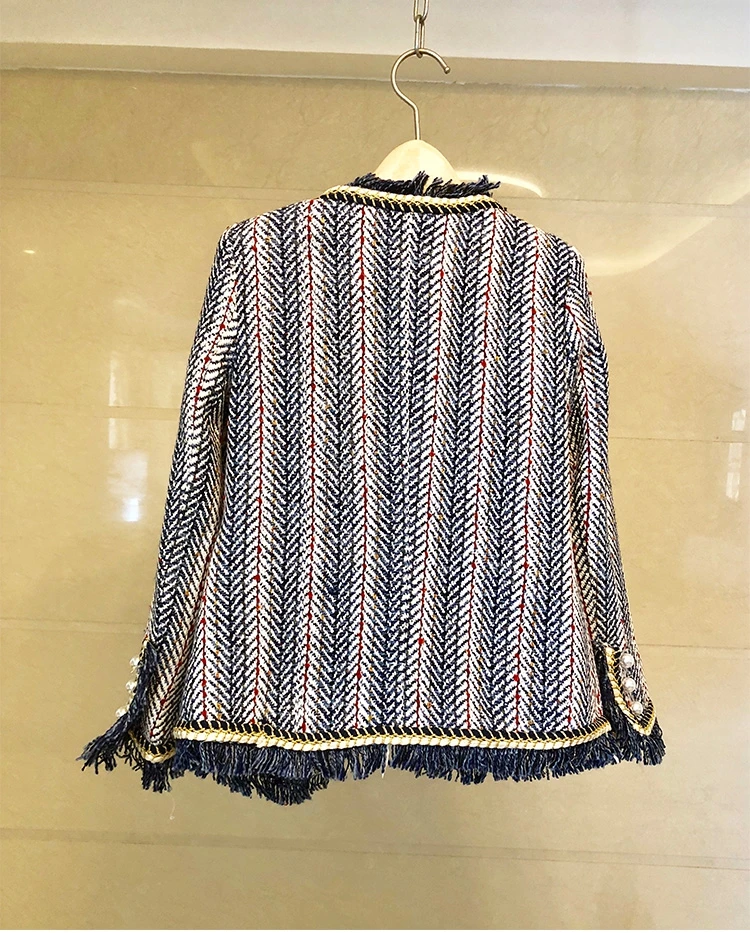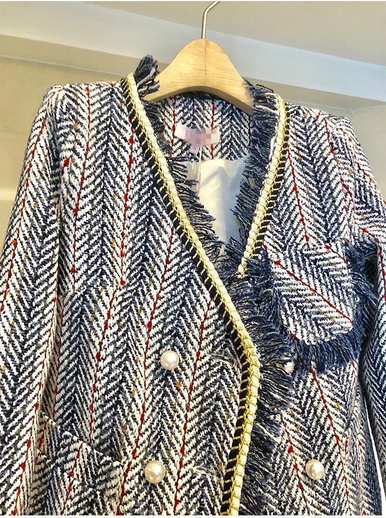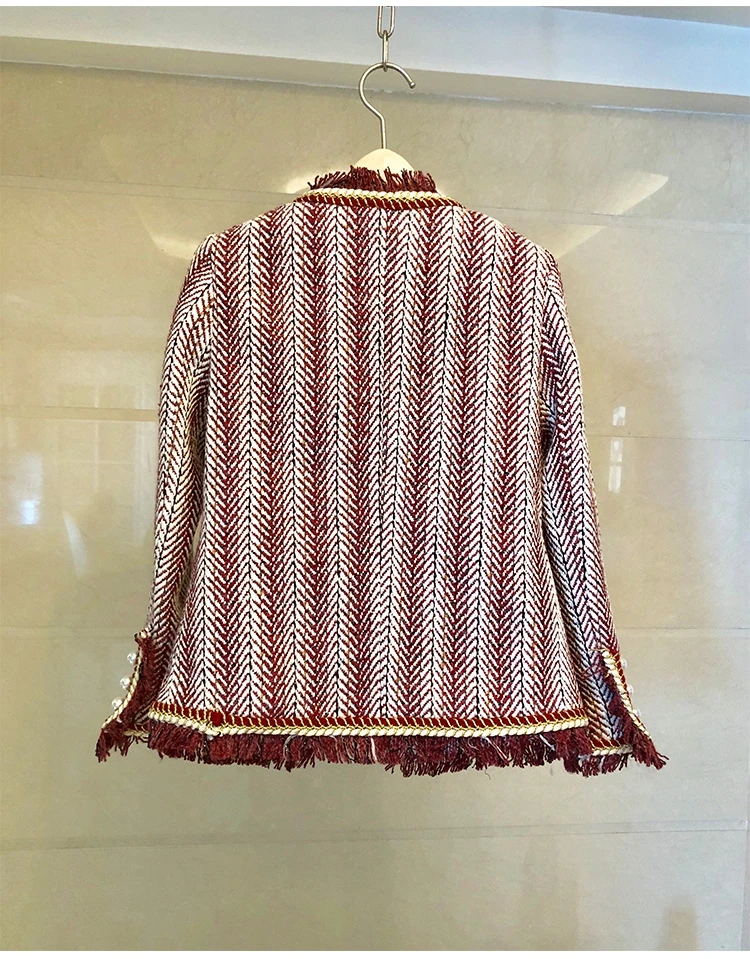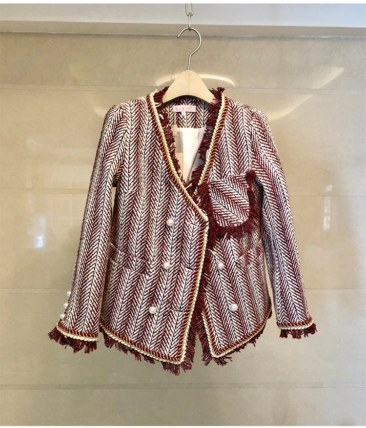 | Tweed Striped Blazer Women 2019 Red Blue Autumn Winter Jacket Coat Mujer Luxury Brand Runway Double Breasted Ladies Female Tops |