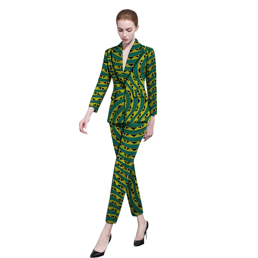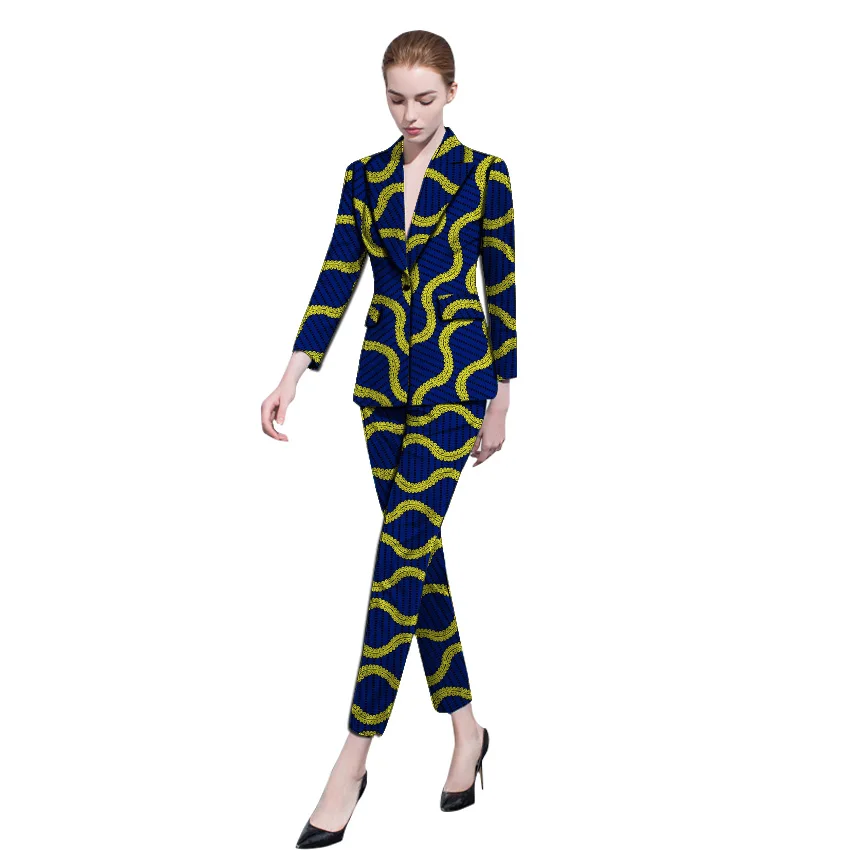 | Elegant African women blazer and trousers sets custom made dashiki print jacket+pant sets ladies kente clothes wedding outfits |
