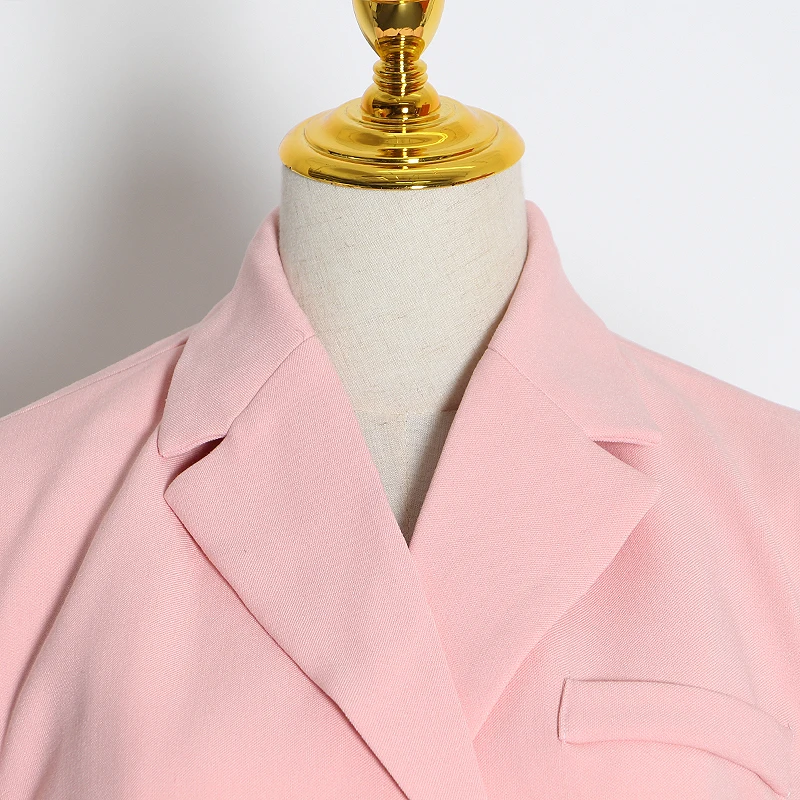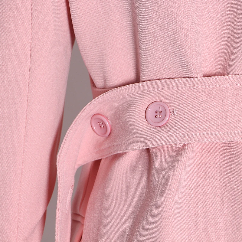 | Elegant Pink Womens Blazer Notched Long Sleeve Pocket High Waist Sashes Suit Female 2020 Spring Fashion New |