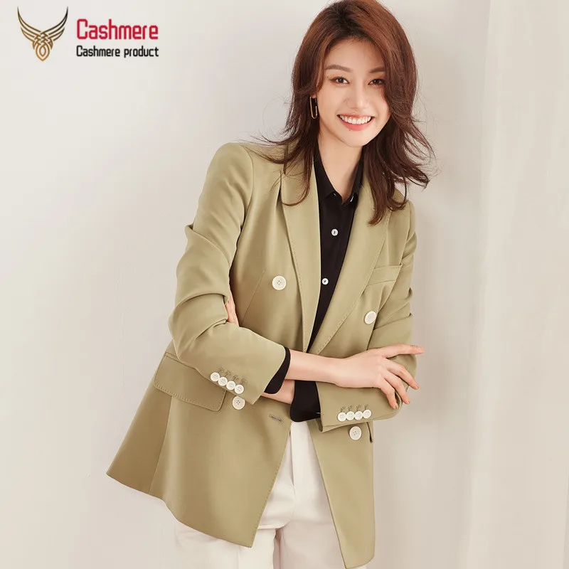 Coat women 2020 spring new bright coat casual suit jacket women double-breasted fashion solid color jacket 100% polyester fiber