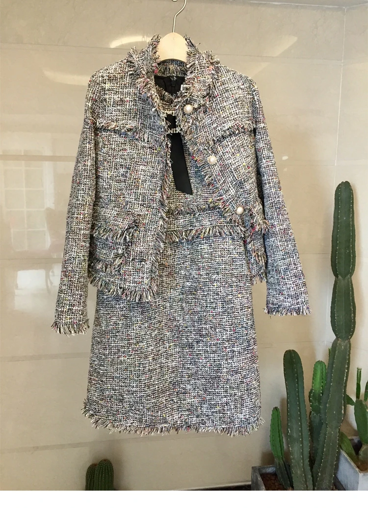 | Dress Suits Tweed Blazer Women Luxury Sweet Runway Elegant Ladies Blazer Jacket Coat Tops Pencil Dress Two Piece Set Outfits |