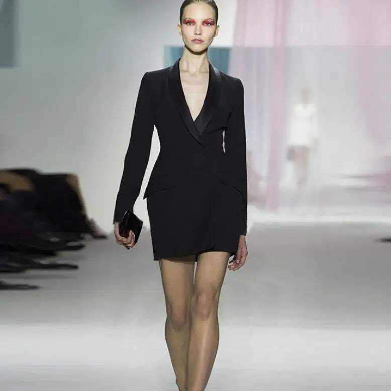 | Long Sleeve Blazer Dress Suit Jacket Women Elegant Slim Runway Designers Luxury Office Lady Formal Wear 2019 Autumn Winter Dress |