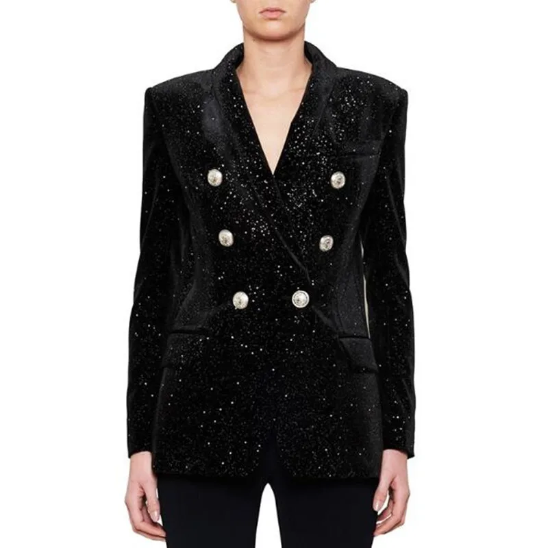 | Womens Stars Blazers Double Breasted Shiny Runway Designer Brand Slim High Quality Suit Jacket Coat Female Sexy Party Outwear |