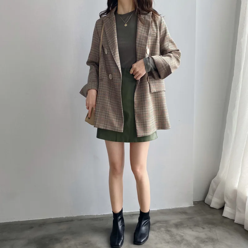 | New Spring Jacket Women 2020 Causal Suit Blazer Plaid Loose Coat Special Flap Pocket Blazer Suit Female Clothes Tailored Jackets |