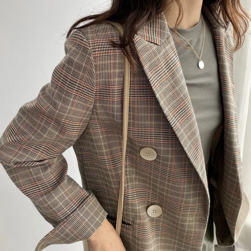 Best Price Comparison With New Spring Jacket Women 2020 Causal Suit Blazer Plaid Loose Coat Special Flap Pocket Blazer Suit Female Clothes Tailored Jackets